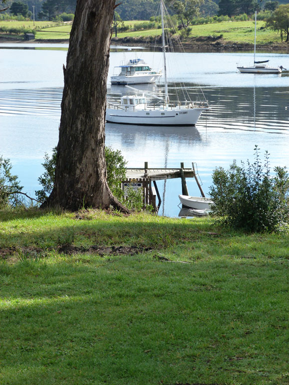 Directions from Hobart – approximately 80km. Head to Huonville. Once in Huonville turn left before the river and head to Cygnet. There are very nice fish and chips available at floating café on the right. Once in Cygnet, go past the Commercial Hotel and turn left at the roundabout. 6km out of town on your right you will see a small bay with yachts moored, white post and rail fence is the property.